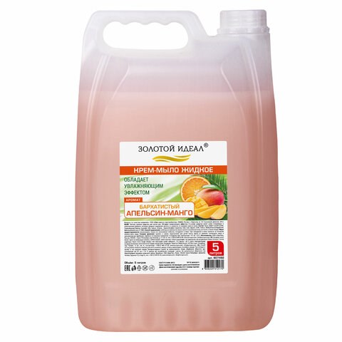 Мыло-крем жидкое, 5 л, ЗОЛОТОЙ ИДЕАЛ "Бархатистый апельсин-манго", 607492
