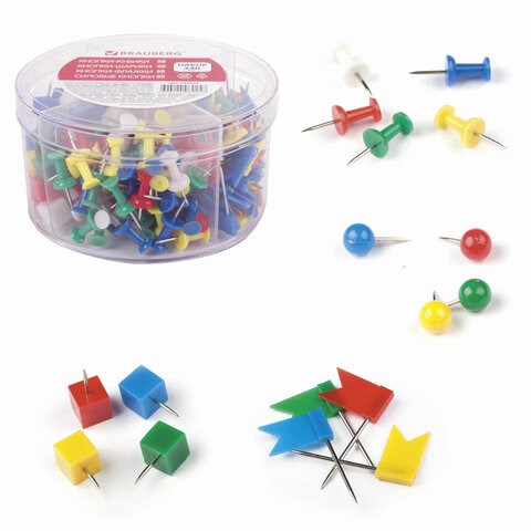 )Набор канцелярских мелочей BRAUBERG объединяет в себе кнопки, кнопки-кубики, кнопки-флажки, кнопки-шарики. Упаковка одновременно является и органайзером для хранения канцелярских мелочей на столе.