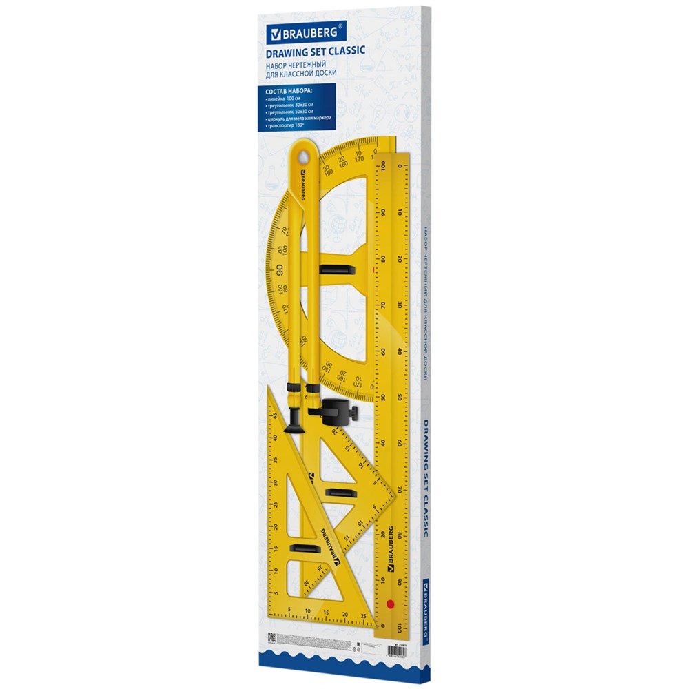 Набор чертежный BRAUBERG предназначен для выполнения чертежных работ на классных досках.• В набор входит:
