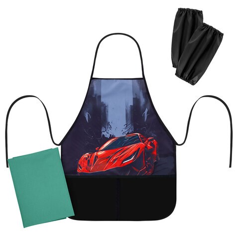 Набор для уроков труда BRAUBERG KIDS, клеенка ПВХ, накидка фартук с нарукавниками, "Red car", 272363