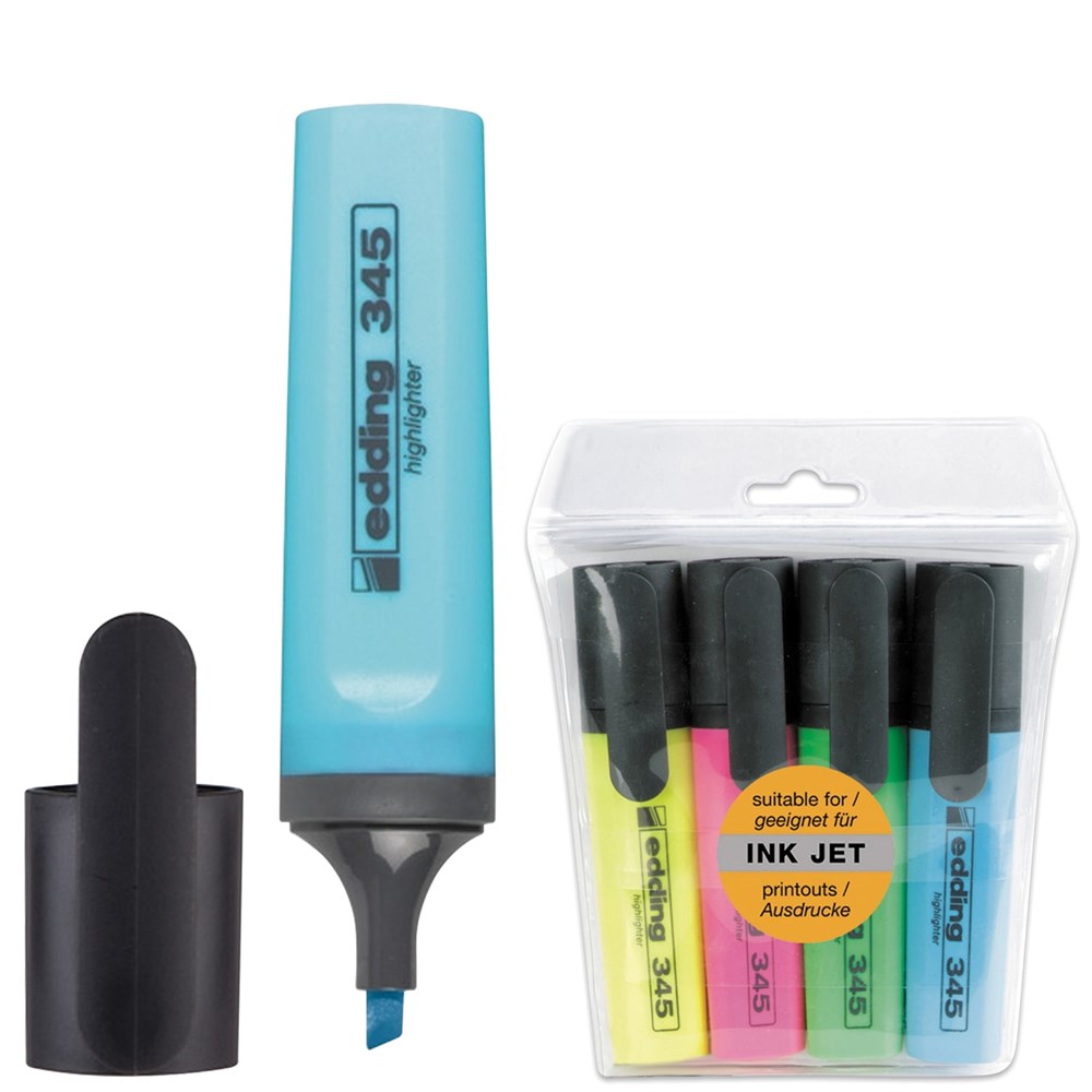 Набор текстовыделителей EDDING 4 шт., АССОРТИ, "345", линия 2-5 мм, E-345/4S/BTS, Е-345-4S