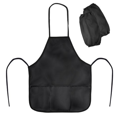 Накидка фартук с нарукавниками для труда ПИФАГОР, 3 кармана, стандартный размер, 44x55 см, черный, 271094