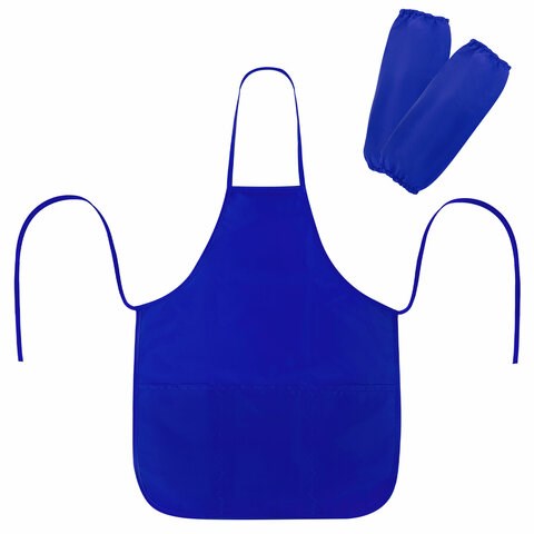 Накидка фартук с нарукавниками для труда ПИФАГОР, 3 кармана, уменьшенный размер, 39х49 см, синий, 270920