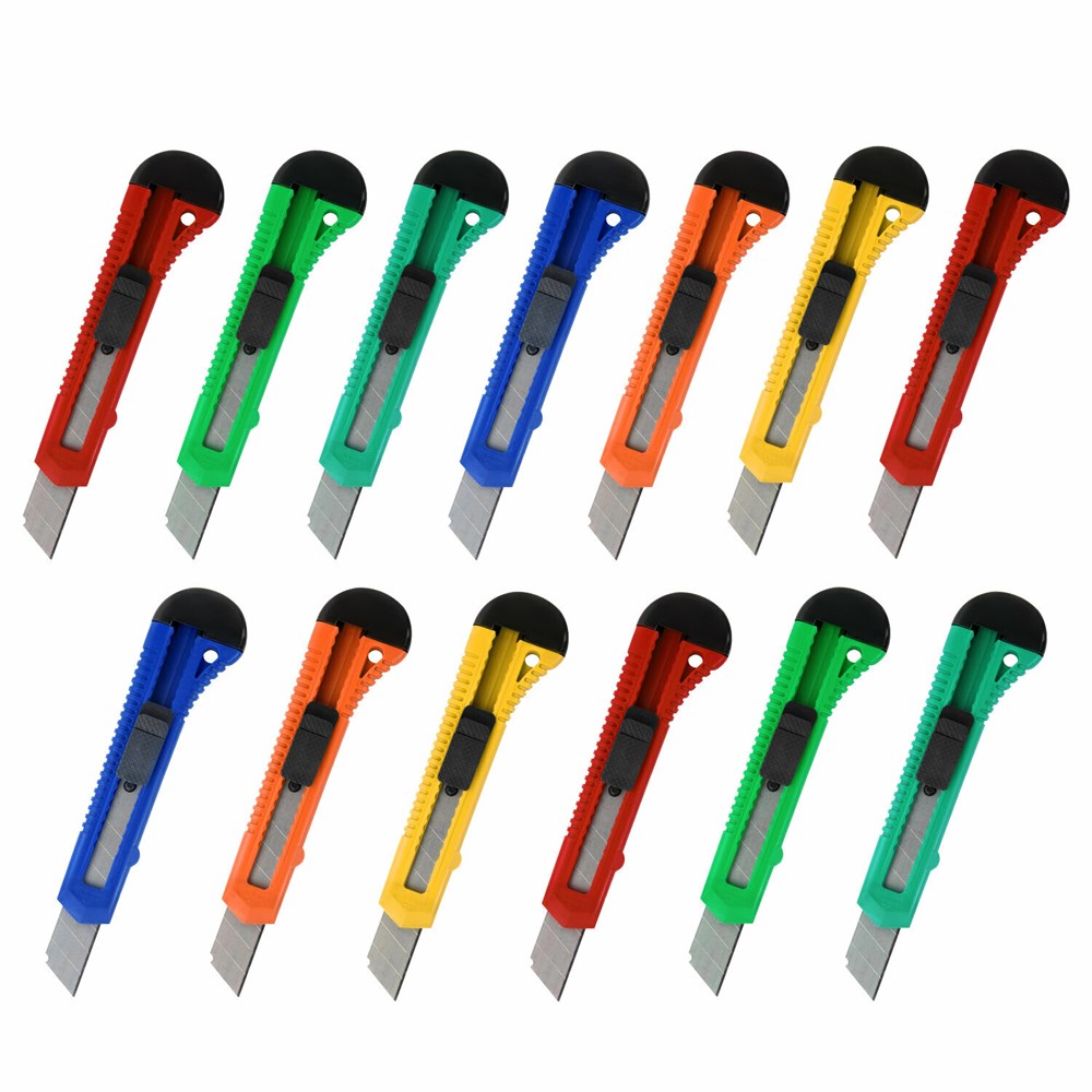 Нож канцелярский 18 мм КОМПЛЕКТ "10 шт. + 3 шт. В ПОДАРОК", фиксатор, STAFF EVERYDAY, 238771