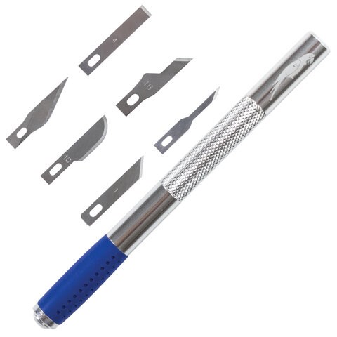 )Макетный нож предназначен для для аккуратной и точной работы по бумаге, пластику, дереву и прочим материалам. Для безопасного извлечения лезвий из футляра необходимо использовать магнит, который встроен в тыльную сторону рукоятки.