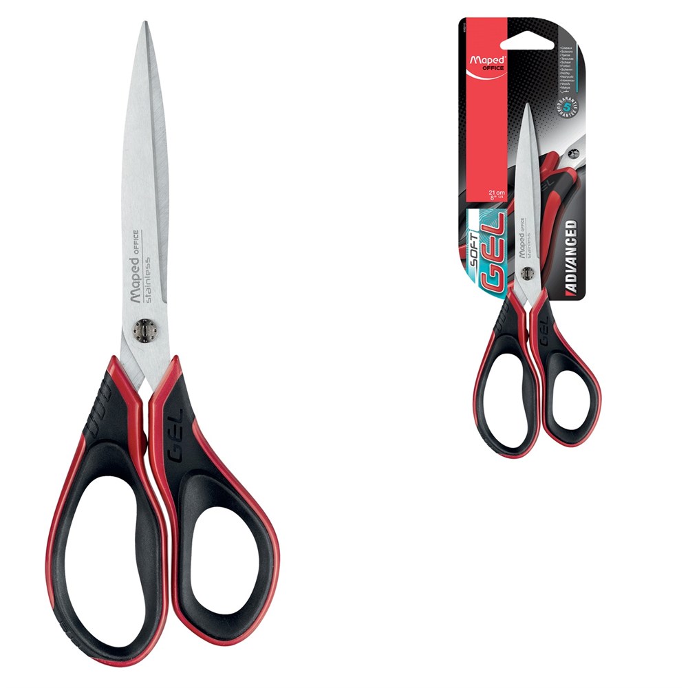 Ножницы MAPED (Франция) "Advanced Gel", 210 мм, прорезиненные ручки, черно-красные, 499210