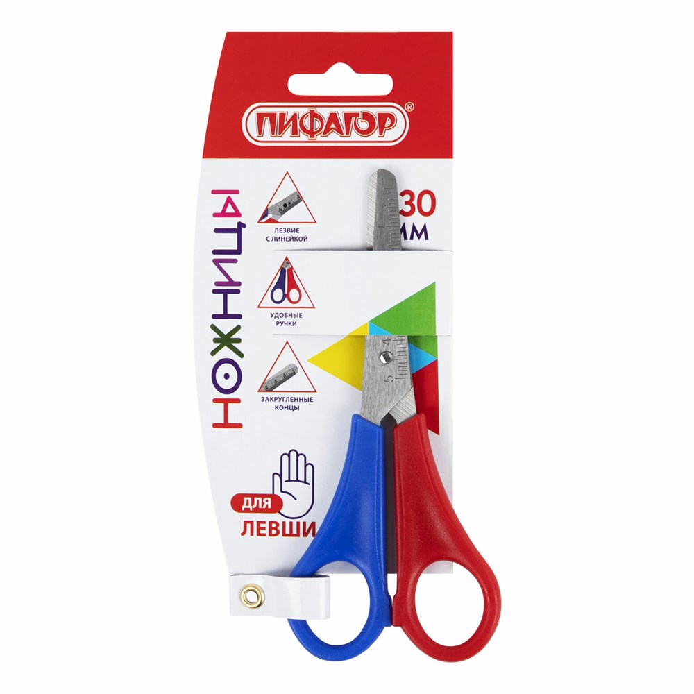 Ножницы ПИФАГОР, 130 мм, для левши, с линейкой, в картонной упаковке с европодвесом, 236784