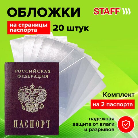 Обложка-чехол для защиты каждой страницы паспорта КОМПЛЕКТ 20 штук, ПВХ, прозрачная, STAFF, 237964