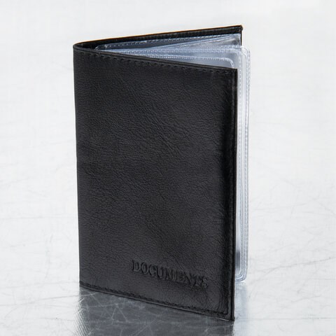 Обложка для автодокументов натуральная кожа галант, "DOCUMENTS", черная, BRAUBERG, 237208