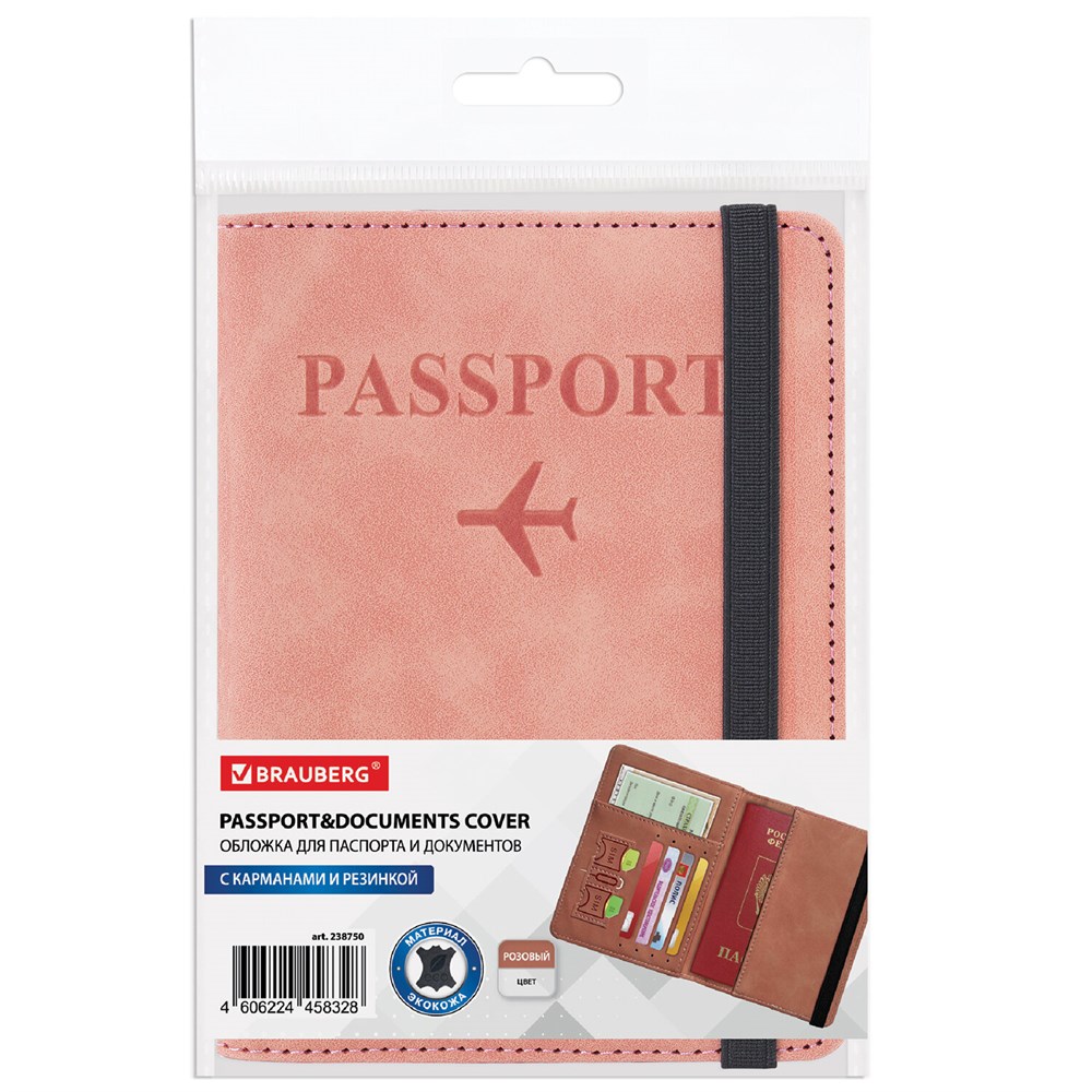 Обложка для паспорта и документов с защитой от считывания, 9 карманов, резинка, экокожа, розовая, BRAUBERG, 238750