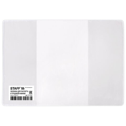 Обложка для паспорта и трудовой книжки, 90х125 мм, ПВХ, прозрачная, STAFF, 237582