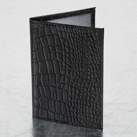 Обложка для паспорта натуральная кожа крокодил, "PASSPORT", черная, BRAUBERG, 237185