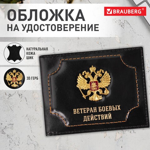 Обложка для удостоверения «Ветеран боевых действий» BRAUBERG надежно защитит документ от изнашивания и загрязнения.