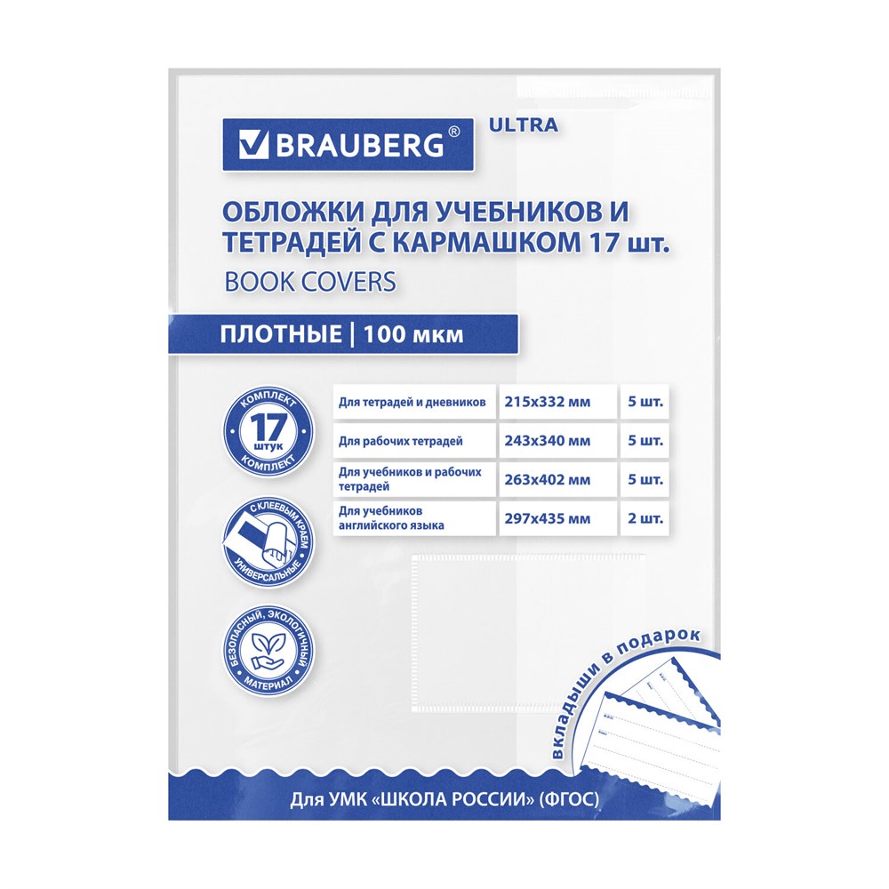 Обложки ULTRA для тетрадей и учебников с кармашком и вкладышами, НАБОР 17 шт., ПЛОТНЫЕ, 100 мкм, BRAUBERG, 273208
