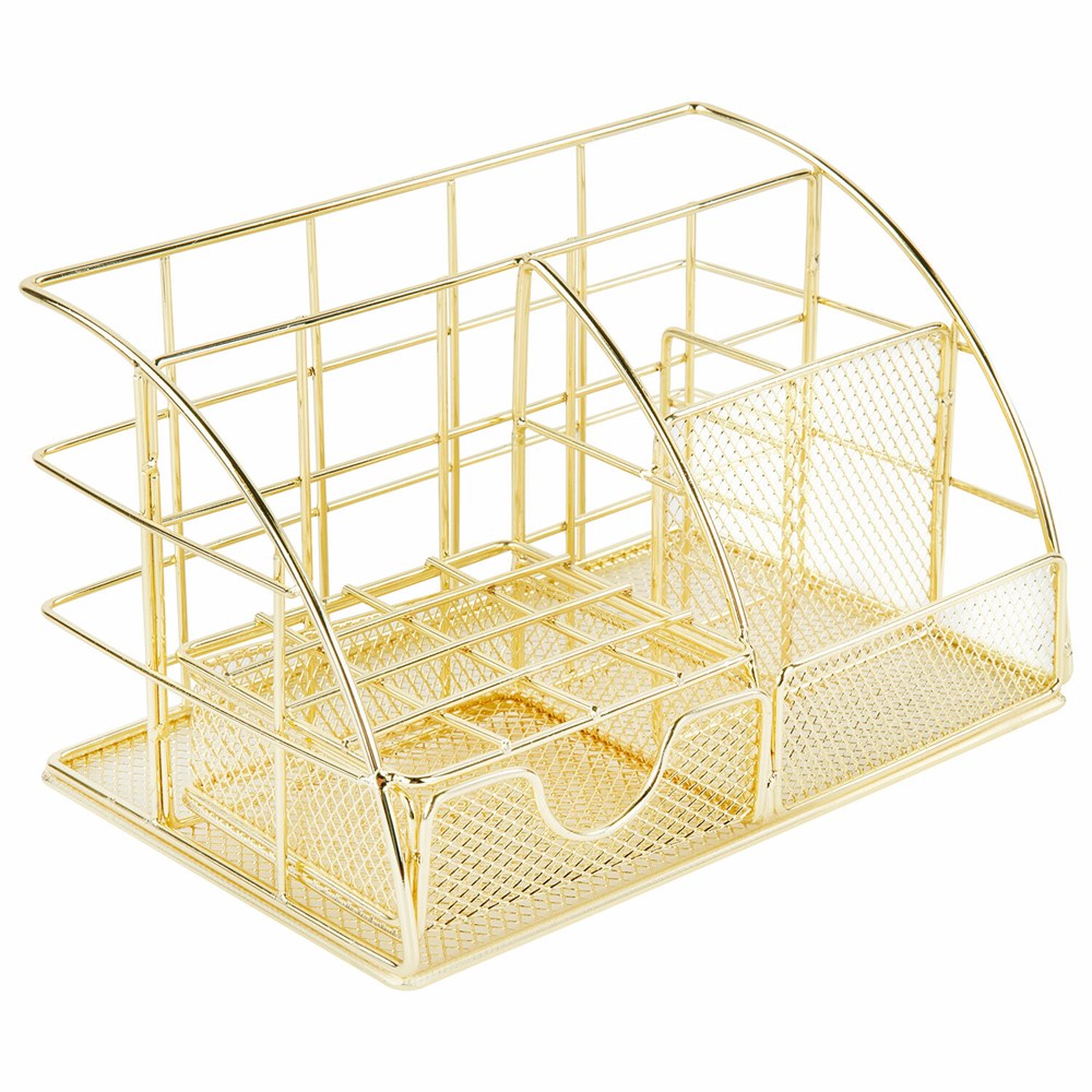 Органайзер для косметики и мелочей металлический 5 секций, MONTE VITA (МОНТЕ ВИТА), 140х220х127 мм, золото, 272477