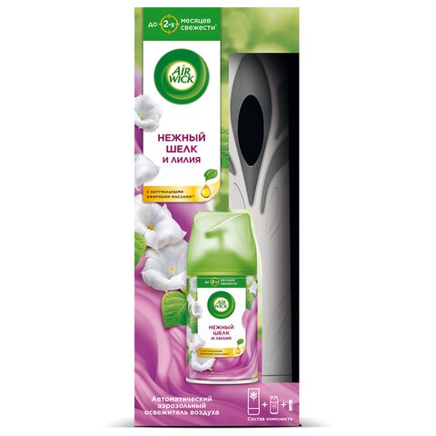 Освежитель воздуха автоматический 250 мл AIRWICK, диспенсер + сменный баллон, "Нежный шелк и лилия", 3222817
