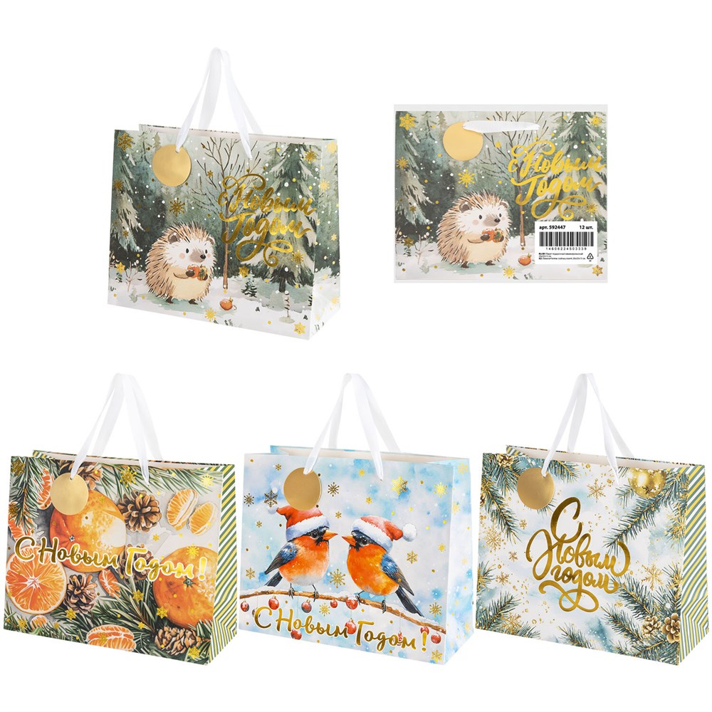 Пакет подарочный (1 шт.) новогодний 26х13х32 см "Акварельная зима" фольга, ассорти, ЗОЛОТАЯ СКАЗКА, 592447
