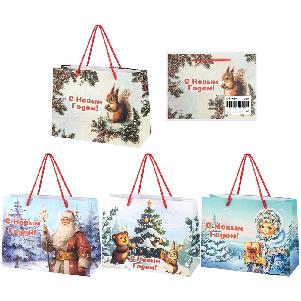 Пакет подарочный (1 шт.) новогодний, 27x11x20 см, "Ретро Новый Год", ламинация, ассорти, ЗОЛОТАЯ СКАЗКА, 592440