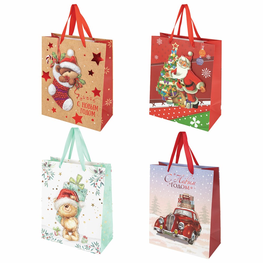 Пакет подарочный (1 штука) новогодний 26x13x32 см, "3D Large", ассорти, ЗОЛОТАЯ СКАЗКА, 592119