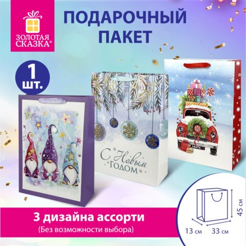 Пакет подарочный (1 штука) новогодний 33x13x45 см, "Artpaper XL", ассорти, ЗОЛОТАЯ СКАЗКА, 592129
