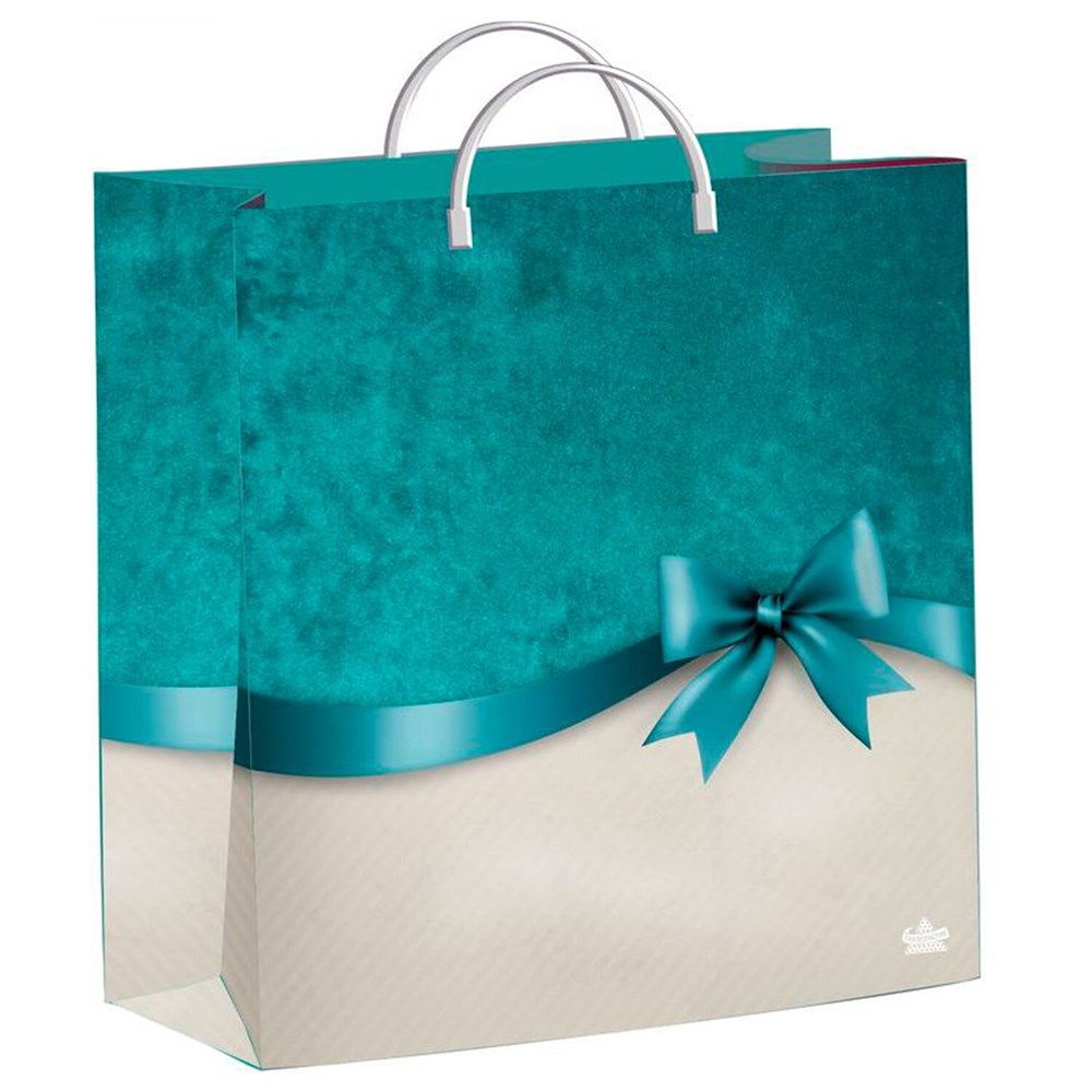 Пакет с пластиковой ручкой, мягкий пластик, 26х24 см, "Бирюзовый бантик", 140 мкм