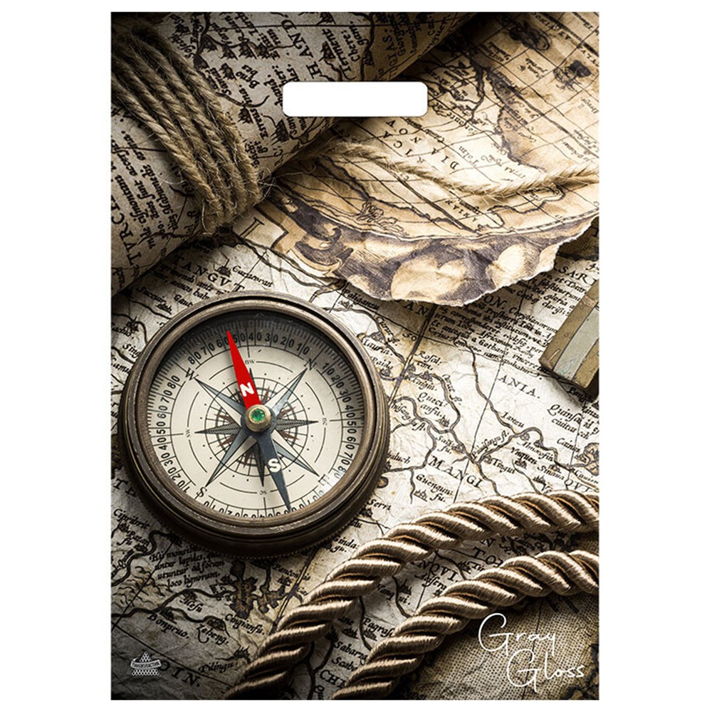 Пакет с вырубной ручкой ПВД, 40х31,5 см, "Грэй Глосс Карта", 50 мкм