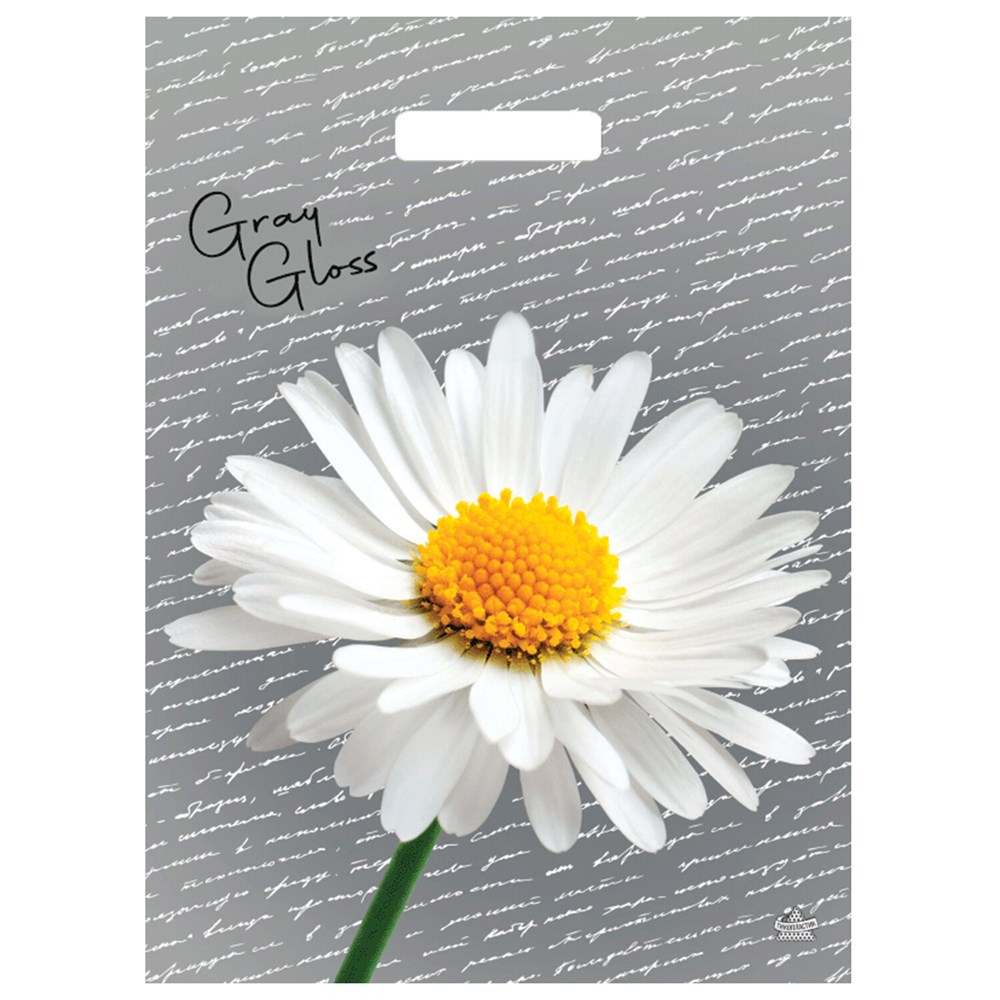 Пакет с вырубной ручкой ПВД, 43х31,5 см, "Грэй Глосс Ромашка", 50 мкм