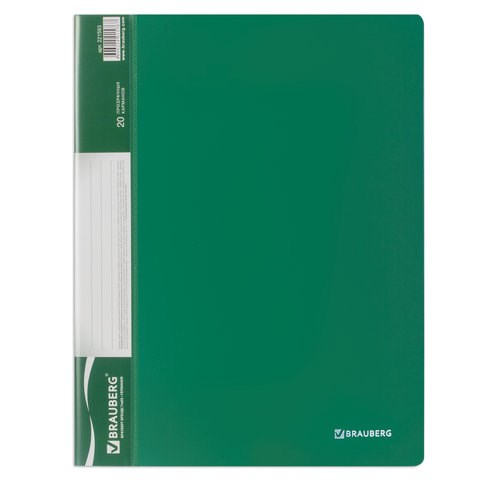 Папка 20 вкладышей BRAUBERG стандарт, зеленая, 0,6 мм, 221593