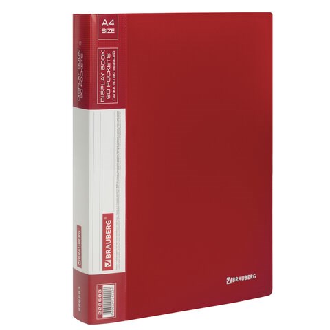 Папка 60 вкладышей BRAUBERG стандарт, красная, 0,8 мм, 228683