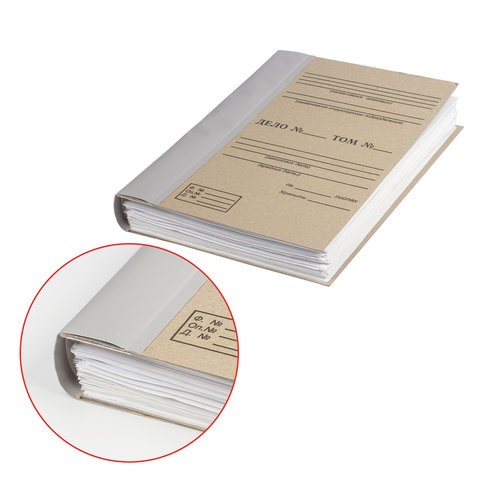 )Папка для бумаг архивная под формат А4 с корешком из бумвинила. Мягкий огибной корешок снабжен клейкой основой и рассчитан на разную толщину переплета в зависимости от подборки документов. Обложка с печатью «ДЕЛО» по Форме 21.