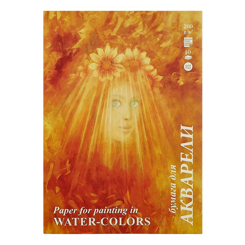 Папка для акварели А4, 10 л., 200 г/м2, бумага ГОЗНАК, среднее зерно, "Флора", П-0279
