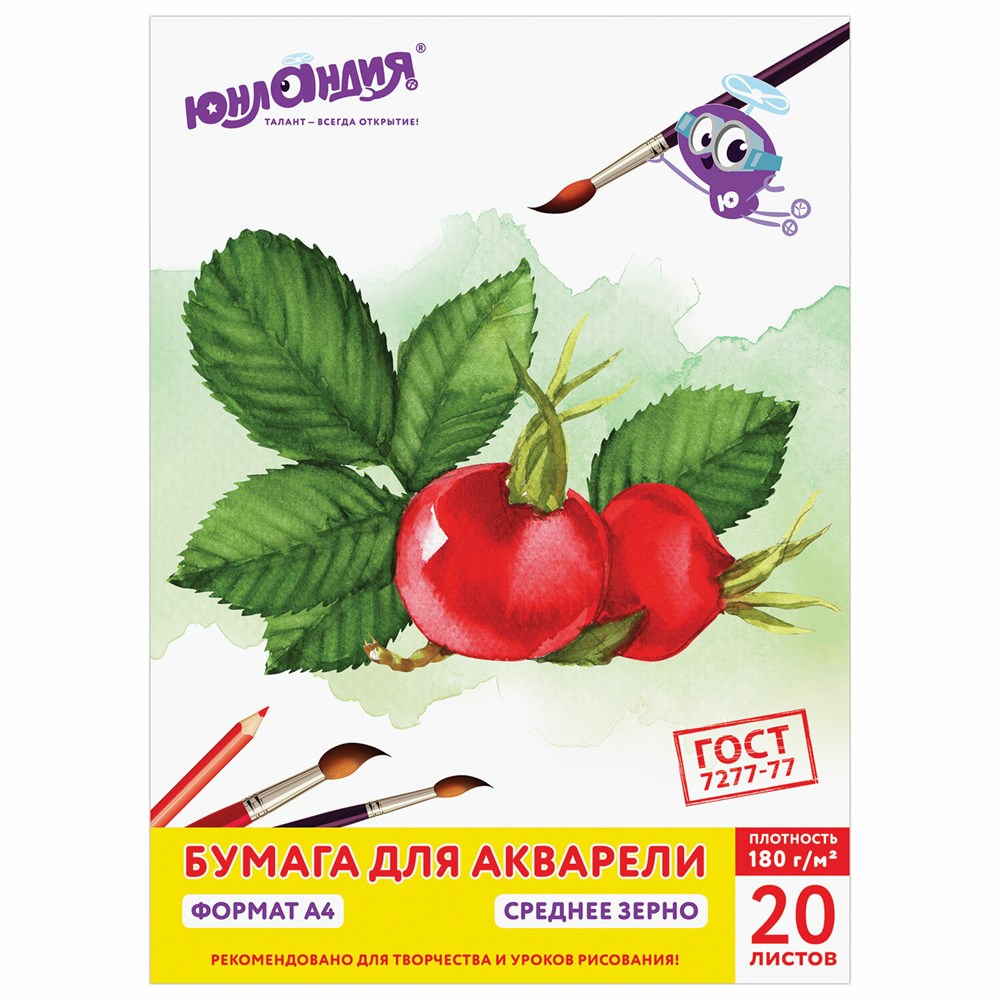 Папка для акварели подходит для рисования всеми видами водорастворимых красок, а также подойдет для рисования карандашами, ручками и фломастерами. Предназначена для непрофессионального и детского рисования, художественная техника - "сухая" акварель.Содержит 20 листов формата А4 (210х297 мм). Белизна 100%. Качественные листы высокой плотности 180 г/м2 устойчивы к истиранию, воздействию влаги, обеспечивают чистую реалистичную передачу цвета. Обложка выполнена из мелованного картона.