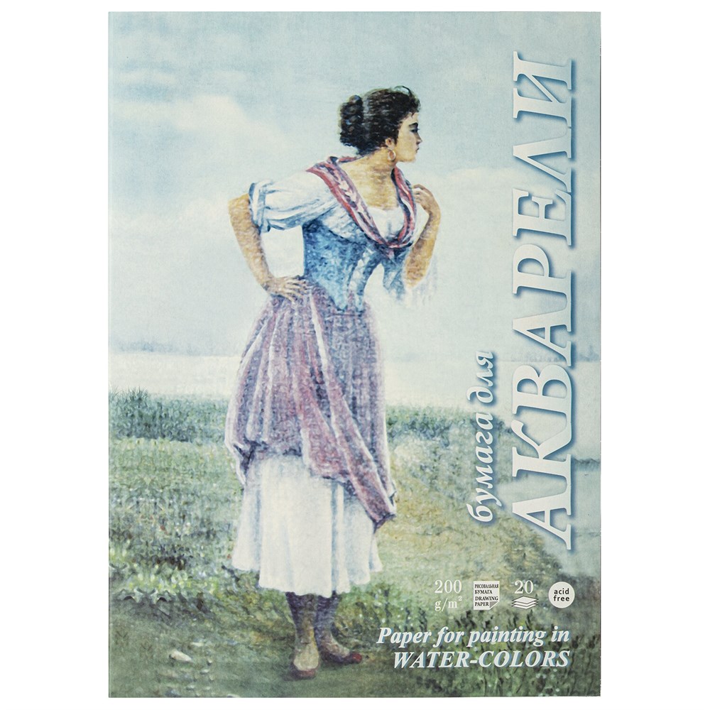 Папка для акварели БОЛЬШАЯ А3, 20 л., 200 г/м2, бумага ГОЗНАК, среднее зерно, "Рыбачка", ПА3/20