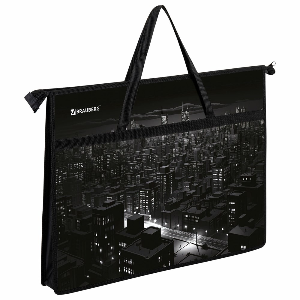 Папка для рисунков и чертежей с ручками BRAUBERG А3, пластик, молния сверху, "Night city", 273410