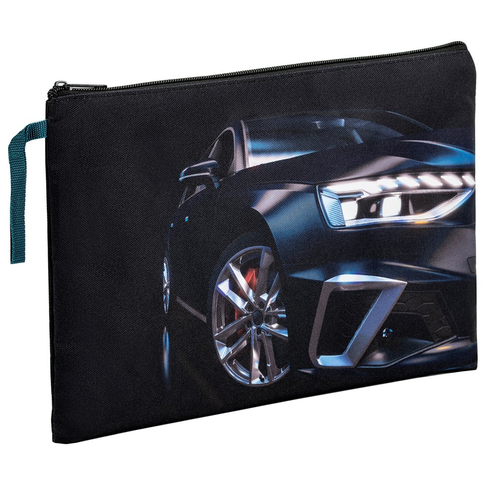 Папка для тетрадей BRAUBERG А4, 1 отделение, полиэстер, на молнии, с ручкой, Super car, 272171