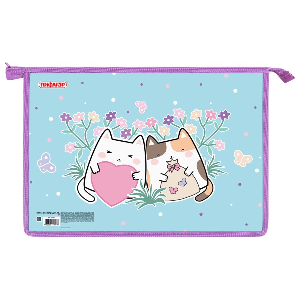 Папка для тетрадей ПИФАГОР А4, 1 отделение, картон/пластик, на молнии, "Cat friends", 272127