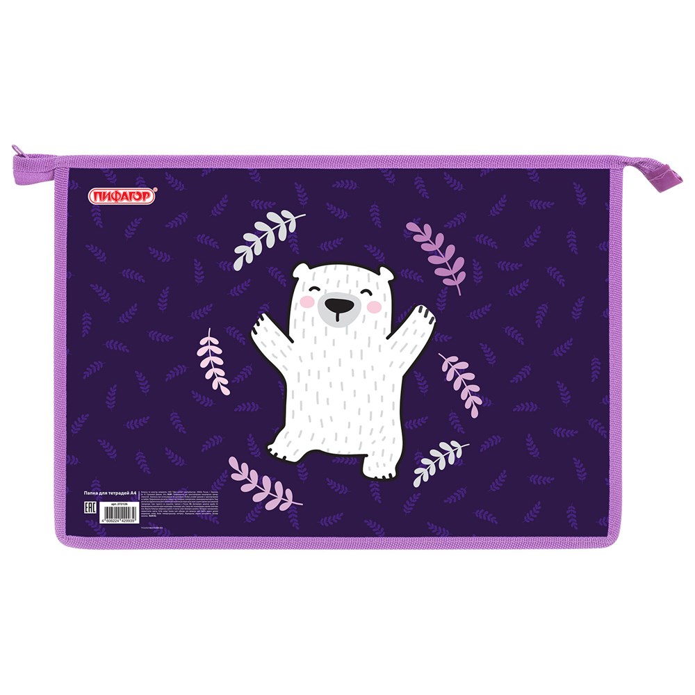 Папка для тетрадей ПИФАГОР А4, 1 отделение, картон/пластик, на молнии, "Happy bear", 272126
