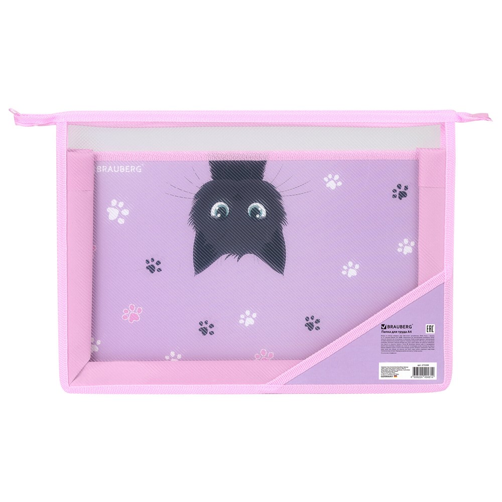 Папка для труда BRAUBERG А4, 2 отделения, пластик, молния сверху, органайзер, "Hide and seek", 273399