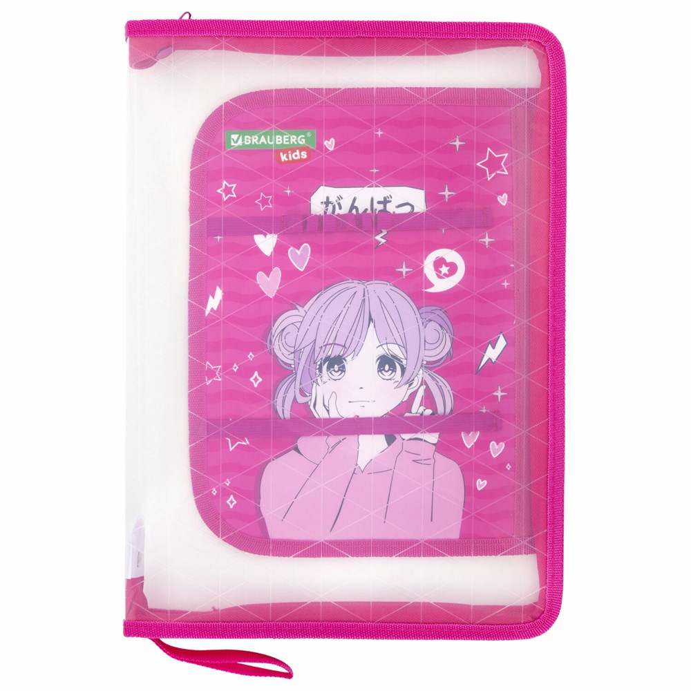 Папка для труда на молнии BRAUBERG KIDS А4, 1 отделение, прозрачная, органайзер, "Anime style", 272208