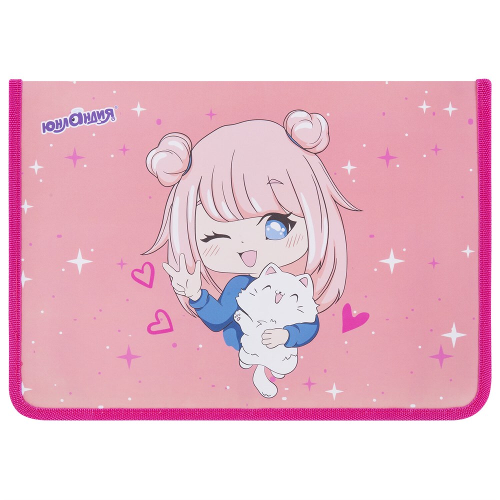 Папка для труда на молнии ЮНЛАНДИЯ А4, 1 отделение, откидная планка, органайзер, "Anime pals", 272222