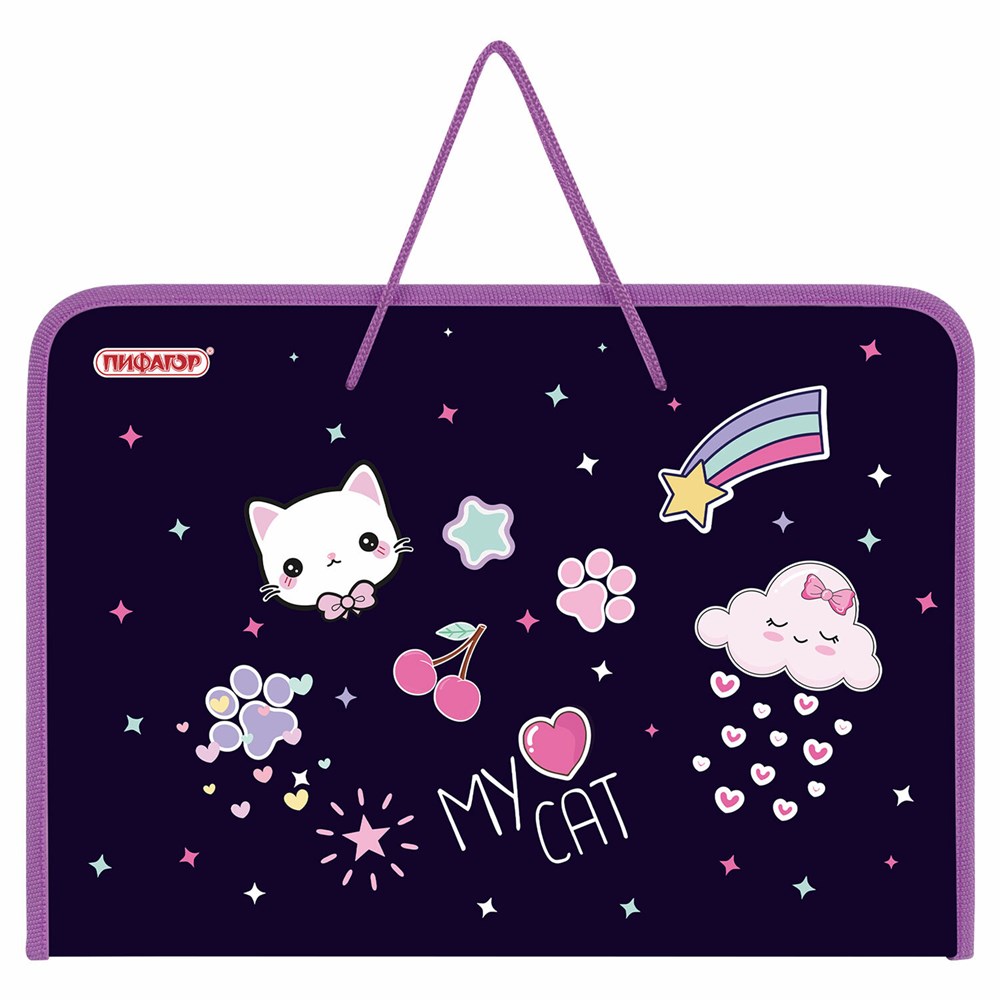 Застёжка-молния, расположенная с трёх сторон, обеспечивает надёжную защиту содержимого и лёгкий доступ к нему. Размер папки составляет 33х23 см, ширина – 2,5 см. Оснащена ручками-шнурками для удобной переноски. Компактный и лёгкий дизайн делает папку практичной для ежедневного использования.