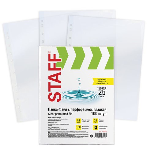 )Перфорированные папки-файлы STAFF «ЭКОНОМ» служат для подшивки документов в папки с любым кольцевым механизмом и скоросшивателем. Они находят свое практическое применение в любом учреждении, предприятии, офисе, фирме.
