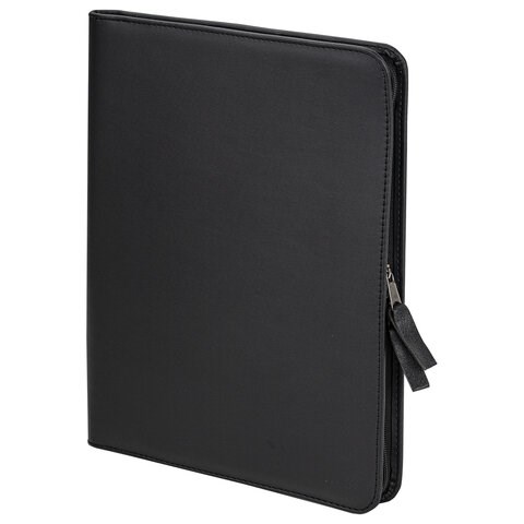 )Распашная деловая папка из кожзаменителя на молнии. Одно объемное отделение и два плоских кармана. Дополнительный карман на молнии. Отделения для визиток и письменных принадлежностей.