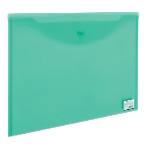 Папка-конверт с кнопкой БОЛЬШОГО ФОРМАТА (305х435 мм), А3, прозрачная, зеленая, 0,18 мм, BRAUBERG, 224033