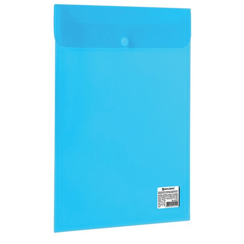 Папка-конверт с кнопкой BRAUBERG А4, вертикальная, прозрачная, синяя, до 100 листов, 0,15мм