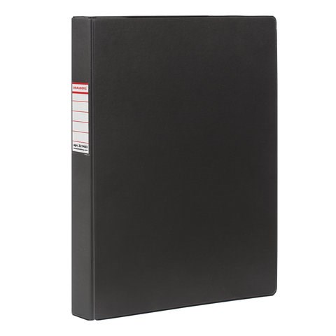 Папка на 4 кольцах BRAUBERG, картон/ПВХ, 35 мм, черная, до 250 листов (удвоенный срок службы), 221483