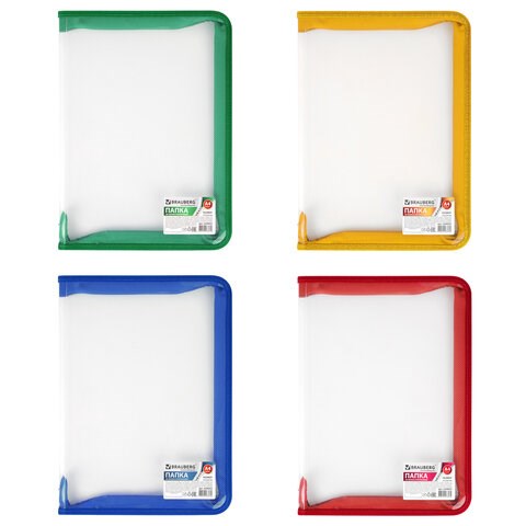 Папка на молнии пластиковая BRAUBERG "Диагональ", А4, 325*230мм, прозрачная, молния ассорти