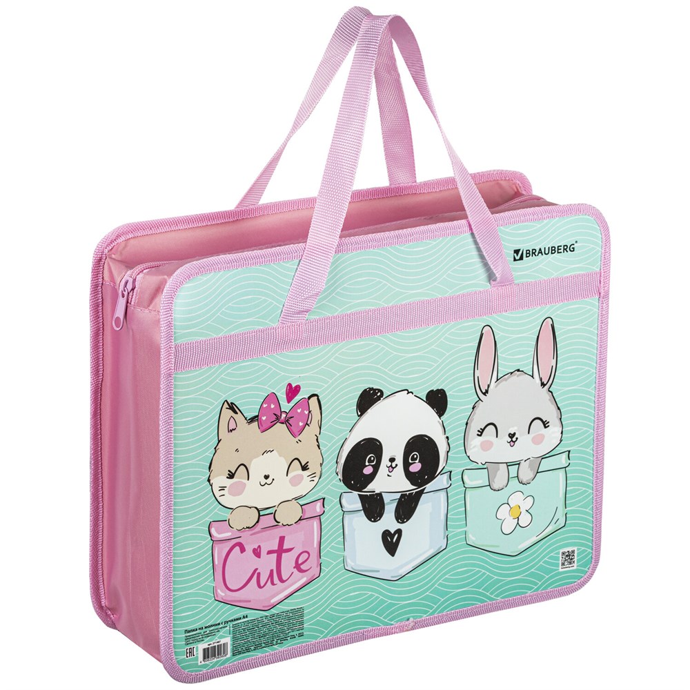 Папка на молнии с ручками BRAUBERG А4 "BEST PALS" предназначена для транспортировки и хранения канцелярских принадлежностей и учебных пособий. Папка защитит содержимое от замятий и повреждений. Идеально подходит для внешкольных занятий.Папка-сумка с ручками подходит для бумаг, документов и учебных пособий формата А4. Изготовлена из прочного износостойкого пластика с тканевой окантовкой по краям.