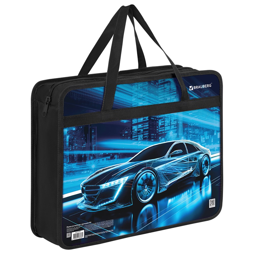 Папка на молнии с ручками BRAUBERG А4, 1 отделение, пластик, 80 мм, "Night driver", 272169