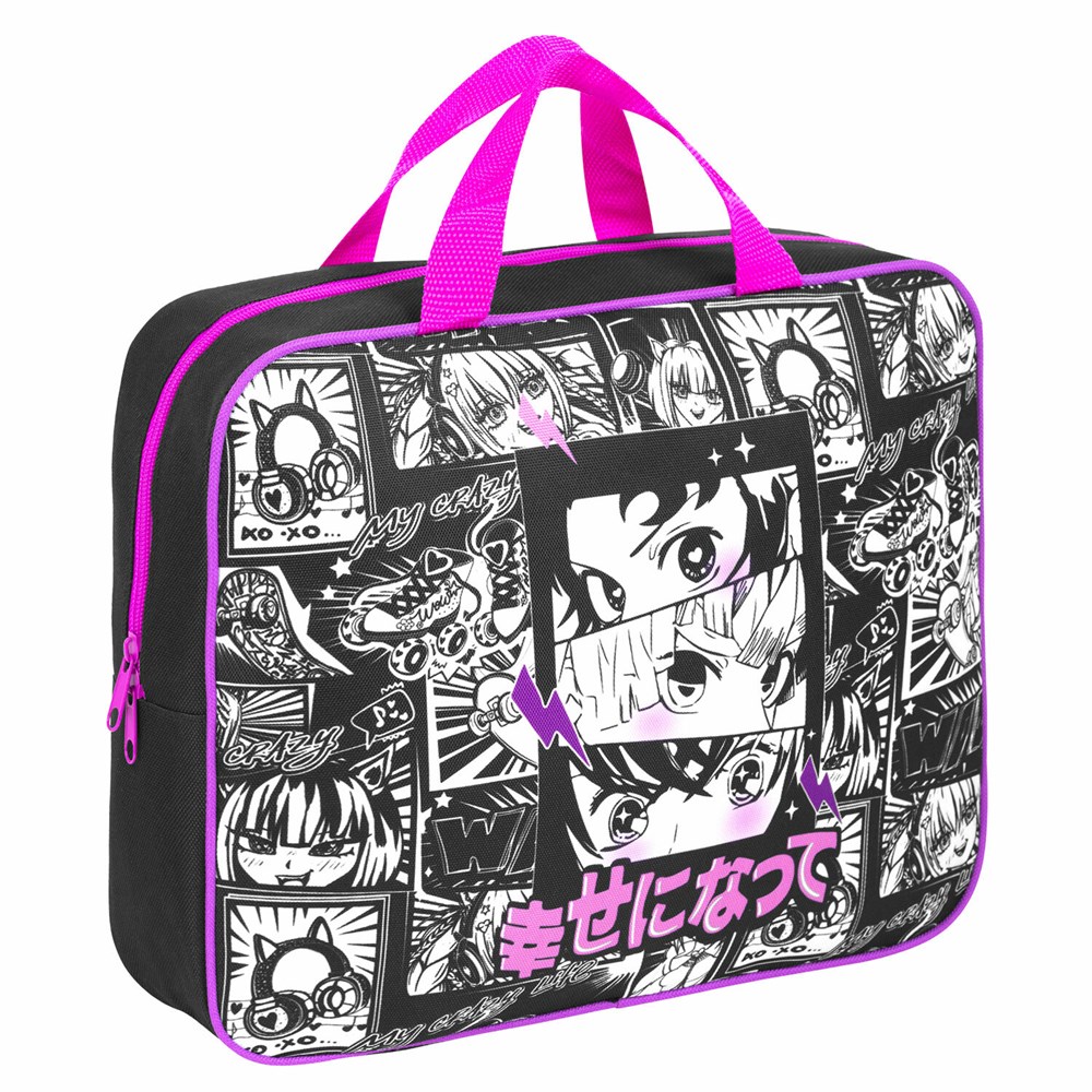 Папка на молнии с ручками BRAUBERG А4, 1 отделение, полиэстер, 80 мм, "Anime movie", 272177